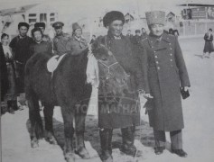 -Ажиллалгүй яахав. Би чинь нэгдлийн ууган гишүүн байгаа юм. Тухайн үеийн өртөөний адууг олон жил малласан. Энд тэндээс зочид ирлээ гэхэд дарга нар манайд л авчирна. Одоо энэ Гүррагчаа баатар, барилгын яамны сайд байсан Телейхан, Лувсанбалдан гуай нар ирж байсан. Манайх чинь ижилхэн ногоон гөлөмтэй морьдтой очиж тосно. Байнгын бэлэн байдалд байна гэсэн үг. Энд сонирхуулахад манай аймаг якутынхантай шиф болдог юм. Тэгсэн аймагт ирсэн төлөөлөгчдийг хүлээн авах ажлыг Баян-Овоогийн дарга нарт үүрэгджээ. Манайх энүүхэн хойно байсан юм. Тэр чинь 10 сар гарчихсан. Болоогүй гүү уяж байгаа юм чинь. Эхнэр маань тогоо шиг гэдэстэй. Дэлхийн аварга Уранцэцэгийн аав гэдсэнд нь байсан үе.
