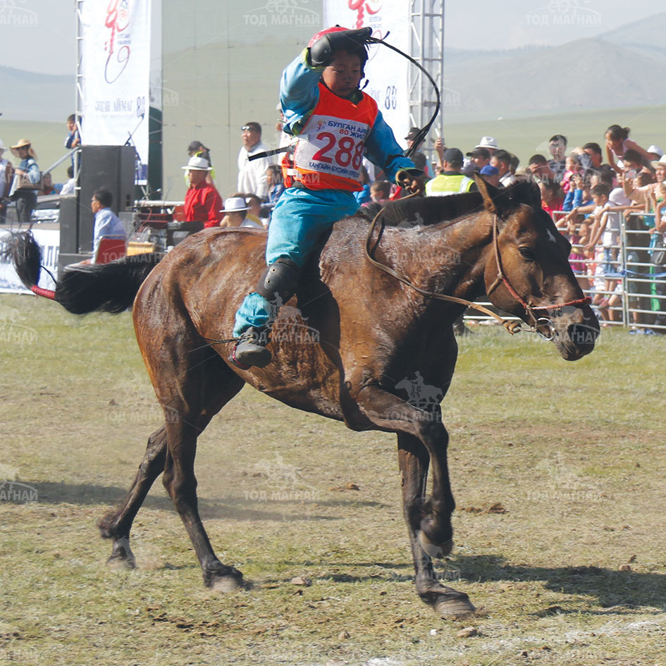 16. Булган аймгийн Сайхан сумын уугуул Л.Лхагва-Очирын халтар . Халтар морийг 14 дугаартай, 11 настай Р.Сумьяабазар унаж хурдлуулсан байна.