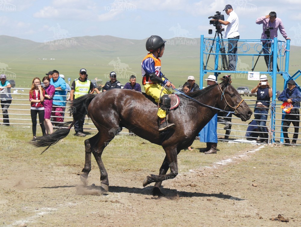 9. Архангай аймгийн Эрдэнэмандал сумын уугуул, аймгийн Алдарт уяач О.Алаг-Уулын хар. Уралдаанч 241 дугаартай, 14 настай Б.Жаргалхүү.