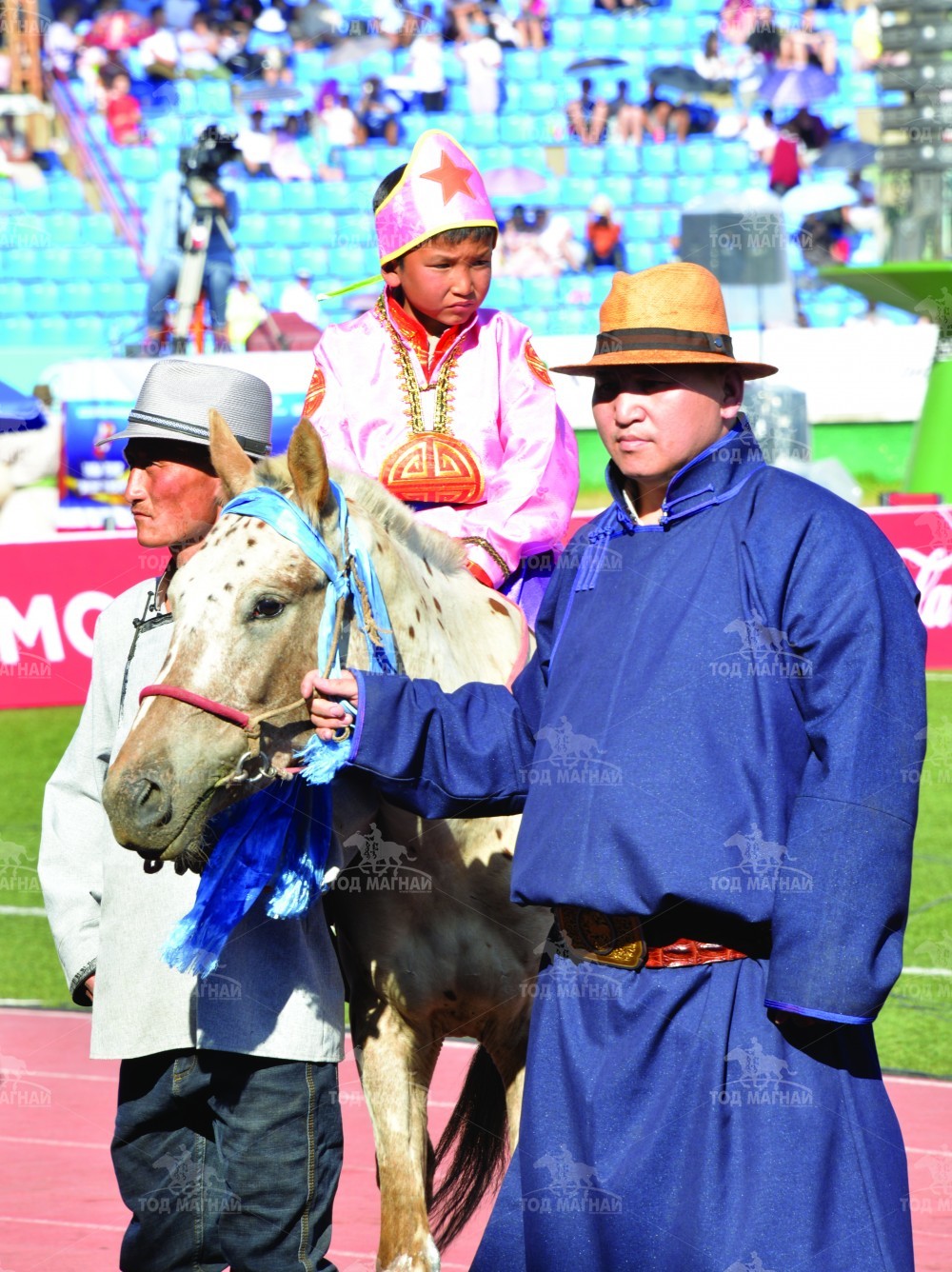 Сэтгүүлч Хүүхдийн ертөнц. Энд цагаахан бас жаргалтай. Бяцхан зүрхэндээ баяр хөөр дүүрэн байгаа нь нүднээс нь гэрэлтэх энэ өдрийн “гол дүр” уралдаанчдын нэг бол 10 настай Баттөрийн Төрболд хүү байлаа. Хурдан морины комиссын гэрээс малгайгаа чихрээр дүүргэж, амжилтаа мялаалгасан түүнийг Гэр бүл, хүүхэд залуучуудын хөгжлийн газрынхан тосон авч гарын бэлгээ мөн гардуулсан юм. Тус газрын хувьд төрийнхөө наадамд унасан хүлгэдээ айраг, түрүүгээр хурдлуулсан уралдаанч хүүхэд бүрийг ийнхүү баярлуулсан билээ.