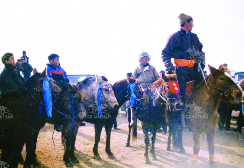 -Энэ жил азарганаас бусад насны есөн морь уяж байгаа. Хоёр их нас, гурван соёолон, нэг хязаалан, хоёр шүдлэн, нэг даага хөнгөрүүлэн бэлтгэж байна. Манай адуунуудын дээд тал Баянцагааны Жаал Банзрагчийн Толбот борын угсаатай. Сүүлд Билэгдэмбэрэл Тод манлайн адуугаар цус сэлбэсэн. Толбот борын угсааны бор азарга, бор морь хоёр маань нэгэн үе сайхан хурдалж, сумдын наадамд айрагдаж, түрүүлэн улсын наадамд арав гаргаж давхидаг байлаа. Тэднийг залгаж Хүзүү зээрд маань хэсэгтээ хурдалсан.