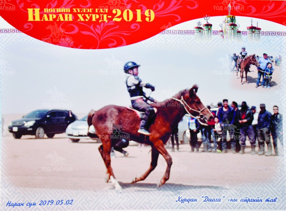 -Тийм. Өнгөрсөн жил аймгийн Алдарт уяач Үнэнбаяр найзаасаа хүрэн халзан даага авч, Наран сумын “Нарангийн хурд” уралдаанд аман хүзүүнд, Онгон суманд уяачдын холбооны уралдаанд түрүү магнайд хурдлуулаад, Баянхонгор аймагт очиж багахан уралдаанд гурваар давхиулсан. Халзан үрээг найз маань өөрөө уядаг юм.