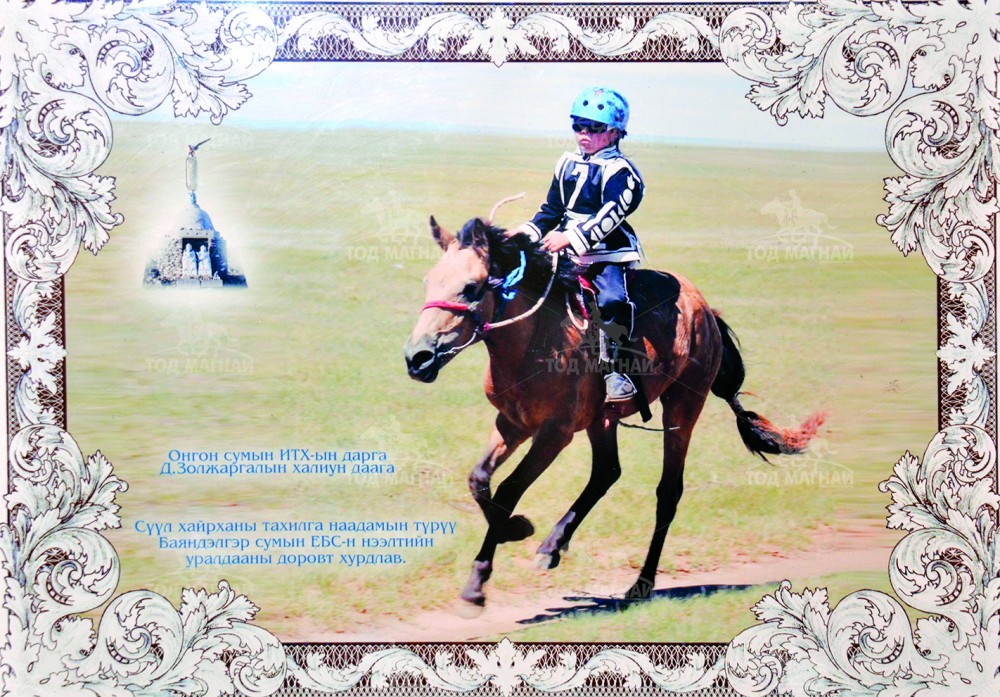 -Өнгөрсөн жил тожин морио айргийн дөрөвт давхиуллаа. Бага насандаа 10 дотор олон уралдсан морь. Уяа сойлгыг нь сумын Алдарт уяач Өсөхбаяр тааруулдаг юм. Миний морьдын уяа сойлгыг Үнэнбаяр, Өсөхбаяр ах дүү хоёр уяач тааруулдаг.