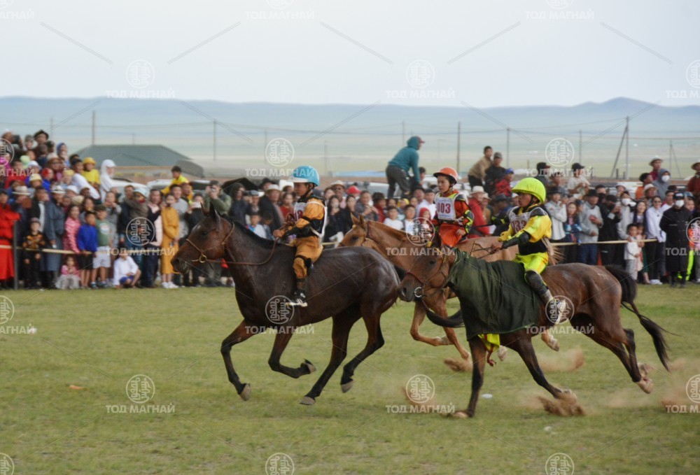 1.Төв аймгийн Заамар сумын уугуул аймгийн Алдарт уяач Жигжидсүрэнгийн Түмэн-Өлзийн ухаа. Өнгөрсөн жил Сэлэнгийн бүсэд өнгөлж яваад хадуурсан. Өнөө жил улсын наадамд 21-д давхиад, давхар уяагаар хангайн бүсэд түрүүлж байгаа нь энэ. Энэ жил найман настай. Уяа сойлгыг аймгийн Алдарт уяач Мондооны Мөнхбаяр тааруулж, есөн настай Мөнхзоригийн Батмөнх хүү унаж хурдлуулжээ.