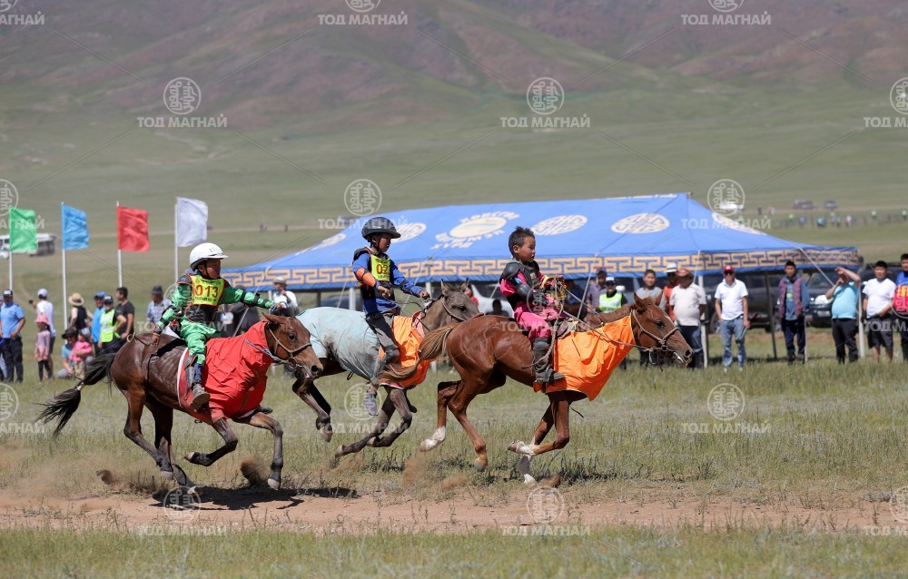 3.Архангай аймгийн Өндөр-Улаан сумын харьяат Г.Жавхлантөгсийн хээр. Уралдаанч 10 настай Л.Мянганжаргал.