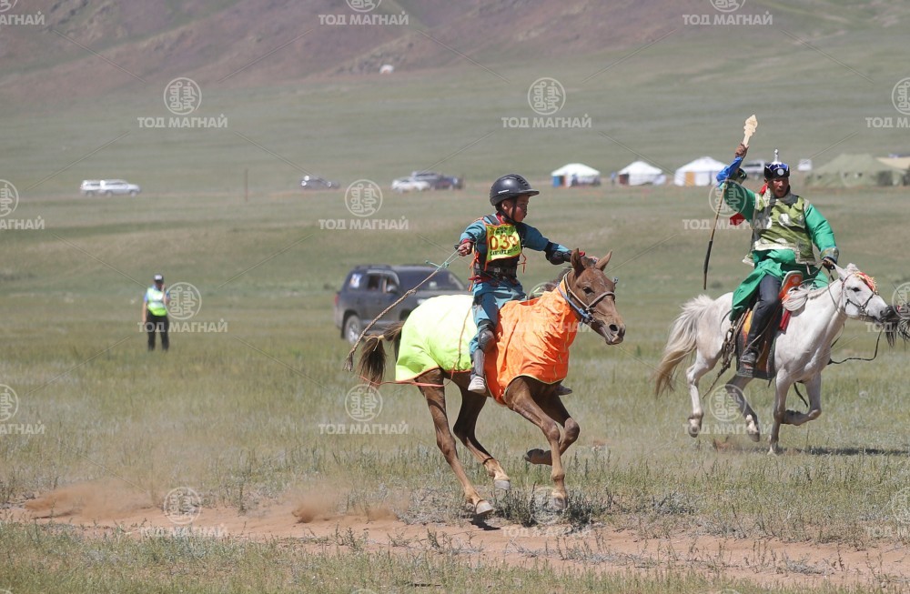 2.Хөвсгөл аймгийн Тариалан сумын харьяат, аймгийн Алдарт уяач Дамдинсүрэнгийн Ариуннарангийн хээр халзан. Уралдаанч 11 настай Б.Улсболд.