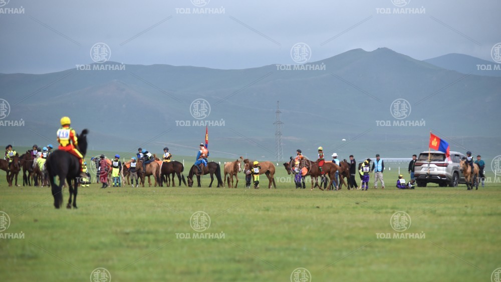 Монгол төрийн наадам морин уралдааны хоёр дахь өдөр. Өнөөдрийн уралдаан адуун сүргийн манлай азаргаар эхэлдэг. Хурдан азарганы уралдаанд 124 хүлэг бүртгүүлсний дунд улсын наадмын хоёр түрүү, Их хурдын түрүү, бүсийн хоёр айргийн эзэн Төв аймгийн Баян сумын харъяат Баасансүрэнгийн Нямжавын Богд хээр, улсын наадмын хоёр түрүү, бүсийн наадмын айргийн эзэн Төв аймгийн Алтанбулаг сумын харъяат Ганзоригийн Ганбаярын хар, улсын наадмын түрүү, бүсийн айргийн эзэн Хөвсгөл аймгийн Мөрөн сумын харъяат нийслэлийн Алдарт уяач Дорждалайн Даяндэмидийн Нарт хонгор, улсын наадмын хоёр, бүсийн гурван айргийн эзэн Булган аймгийн Гурванбулаг сумын харъяат Хишигжаргалын Аминхишигийн хүрэн халзан, бүсийн наадмын хоёр түрүү, нэг айргийн эзэн Булган аймгийн Гурванбулаг сумын харъяат аймгийн Алдарт уяач Сэрээнэнгийн Гал-Эрдэнийн Хутагт хээр, улсын наадмын нэг, бүсийн дөрвөн айргийн эзэн Говь-Алтай аймгийн Эрдэнэ сумын харъяат аймгийн Алдарт уяач Ц.Хүрэлтулгын хүрэн, бүсийн наадмын гурван айргийн эзэн Өвөрхангай аймгийн Хужирт сумын харъяат Батхүүгийн Ганхөлөгийн Янзага хул, улсын болон бүсийн нэг нэг түрүүний эзэн Баянхонгор аймгийн Баянговь сумын харъяат аймгийн Алдарт уяач Бямбаагийн Баярсайханы Наадам хээр, Дундговь аймгийн Өлзийт сумын харъяат Батсүхийн Наранхүүгийн халиун, бүсийн дөрвөн айргийн эзэн Өвөрхангай аймгийн Бат-Өлзий сумын харъяат аймгийн Алдарт уяач Дондогсэрчингийн Лхамсүрэнгийн халтар, Хөвсгөл аймгийн Цагаан-Уул сумын харъяат МУ-ын Манлай уяач Д.Ганхуягийн хээр, бүсийн хоёр түрүү, нэг айргийн эзэн Төв аймгийн Баян сумын харъяат Баасансүрэнгийн Нямжавын Хутагт хээр зэрэг азарганууд багтжээ.