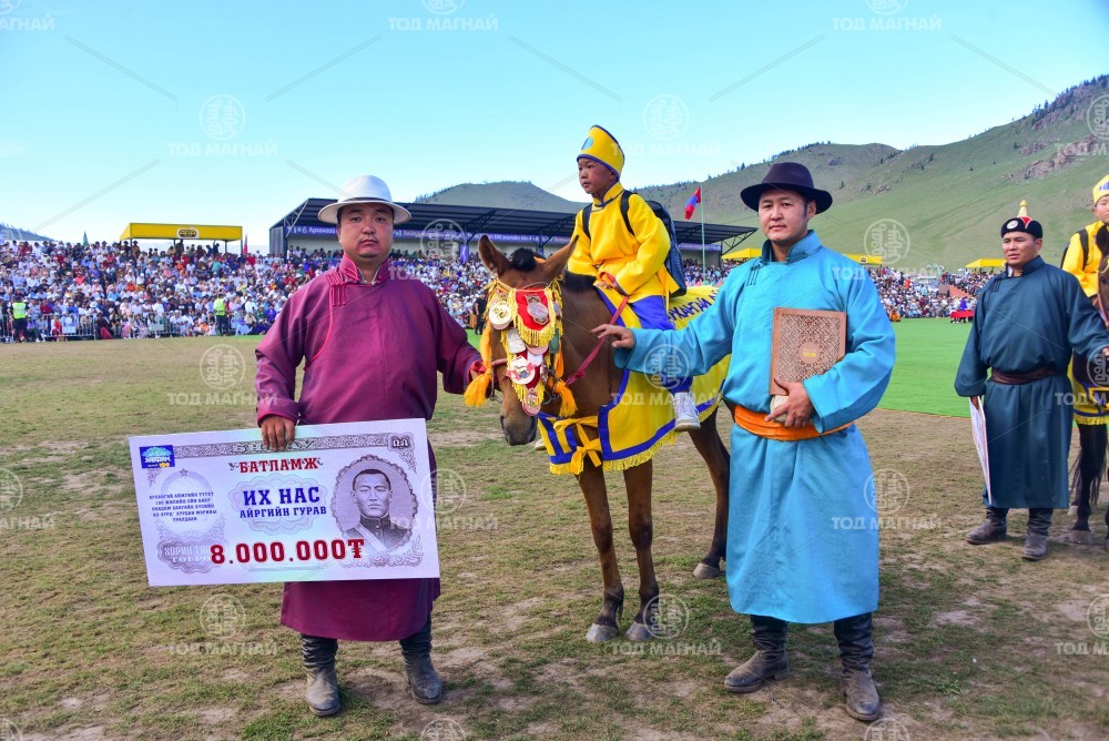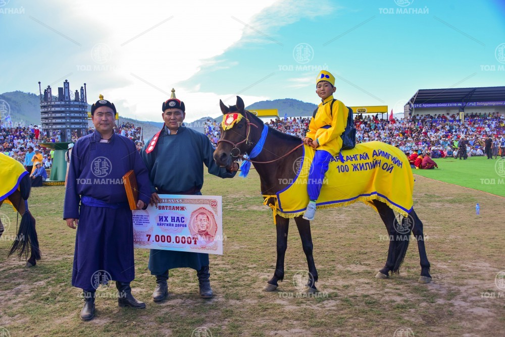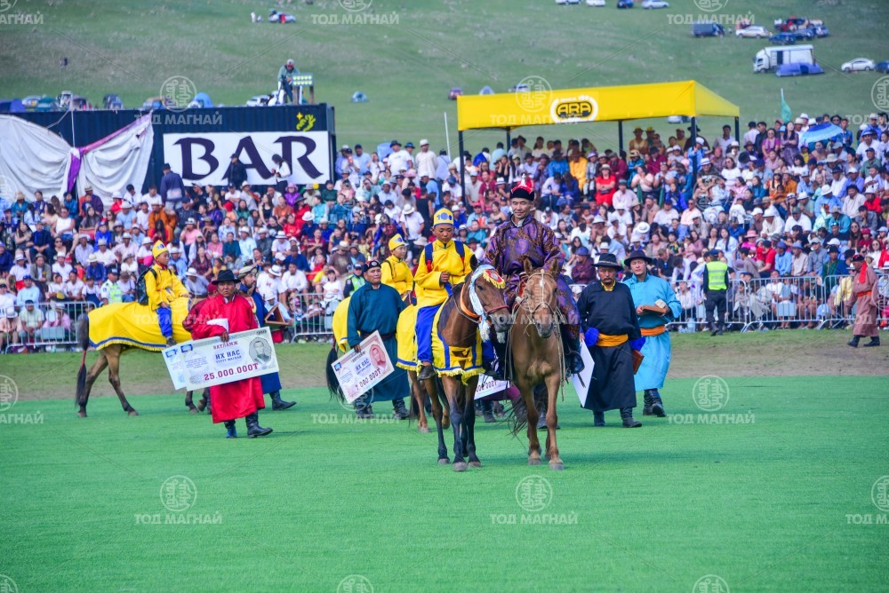 2.Булган аймгийн Бугат сумын уугуул, Орхон аймгийн Баян-Өндөр сумын харьяат, аймгийн Алдарт уяач Жамбалдорж Батсуурийн Цог хүрэн. Уяа сойлгыг Архангай аймгийн Хотонт сумын харьяат, аймгийн Алдарт уяач Даваажавын Энхбаатар. Сүхбаатар аймгийн Сүхбаатар сумын Цогтбаатарын унаган адуу. Хэдхэн хоногийн өмнө Хотонт сумын 100 жилийн ойд түрүүлсэн.