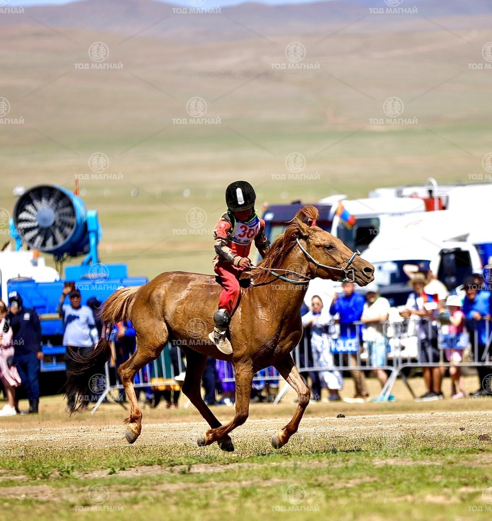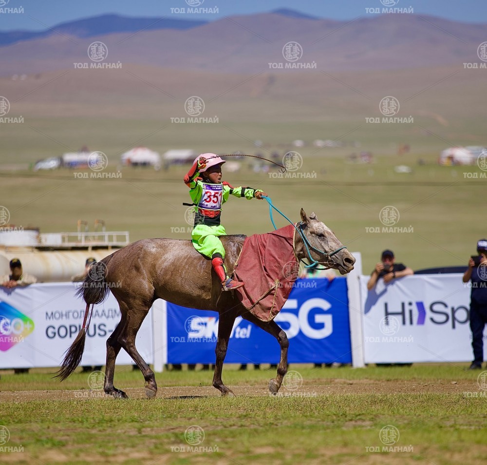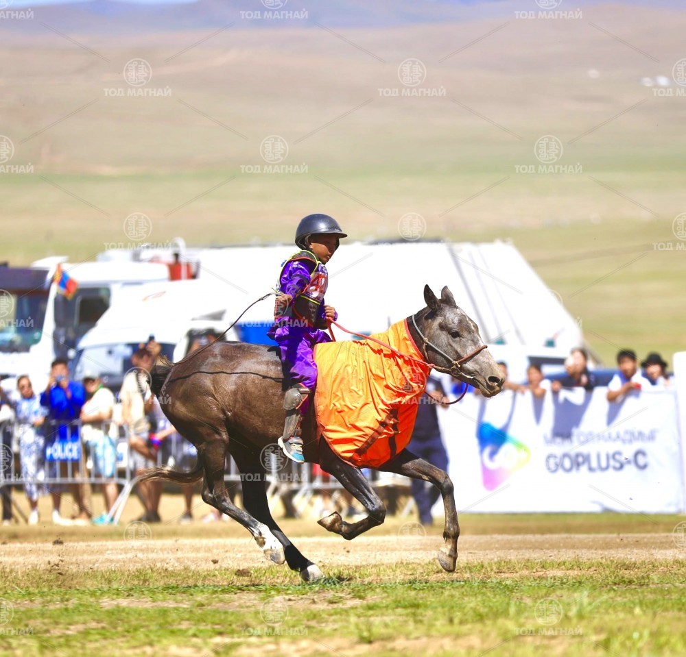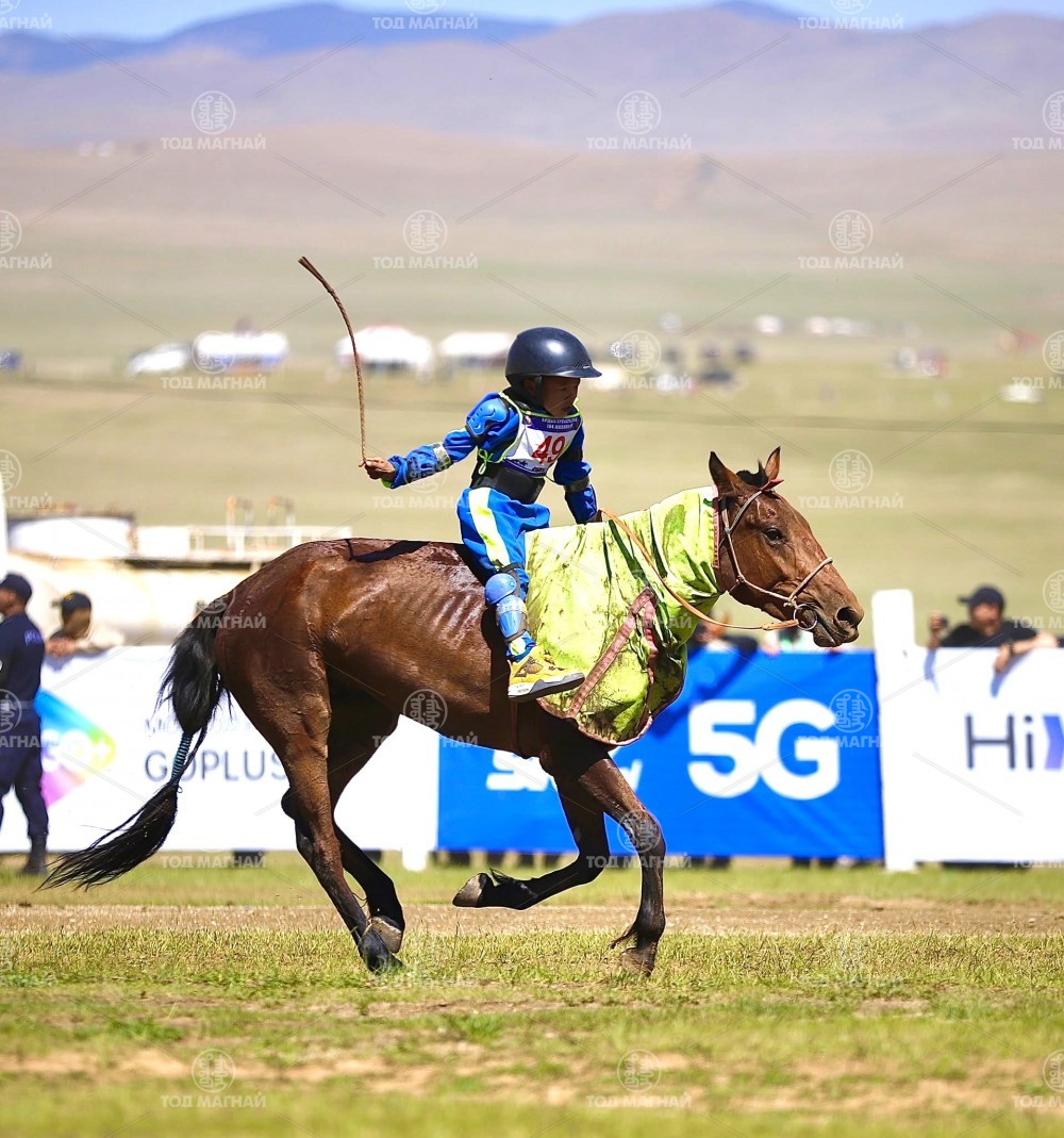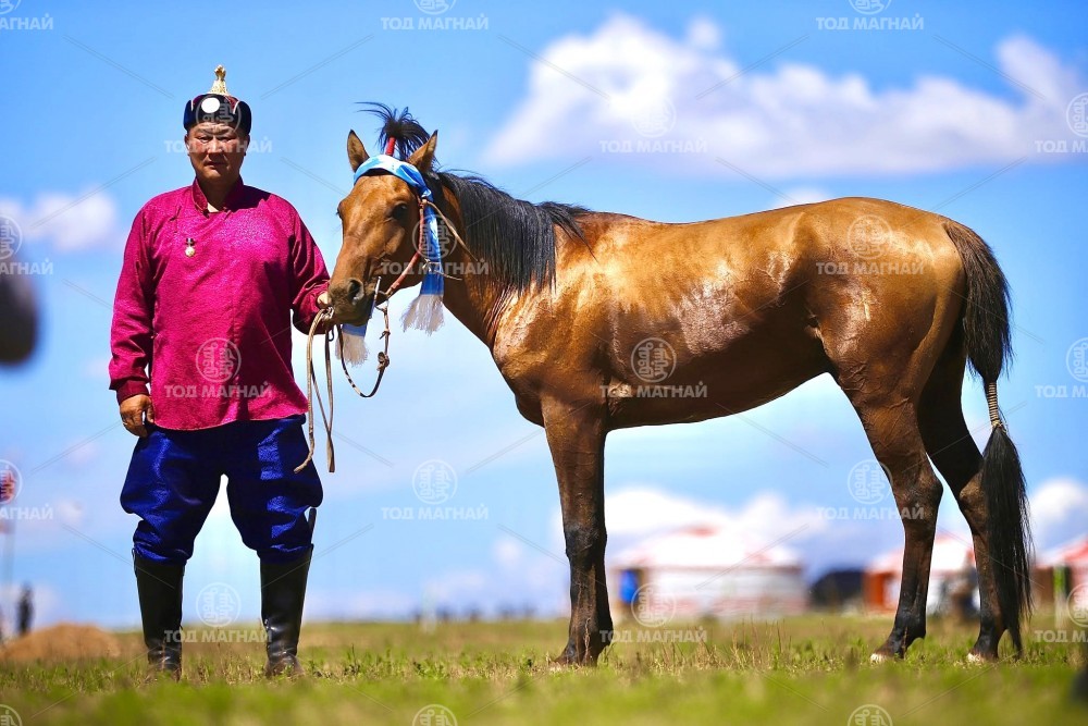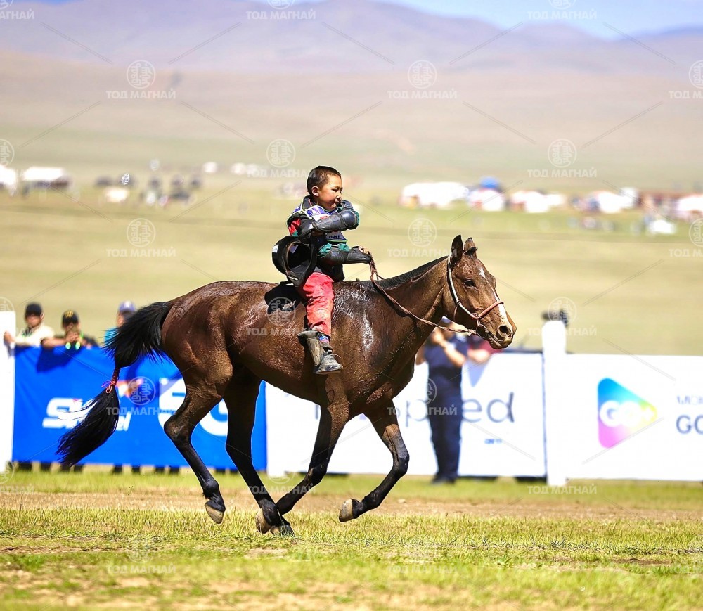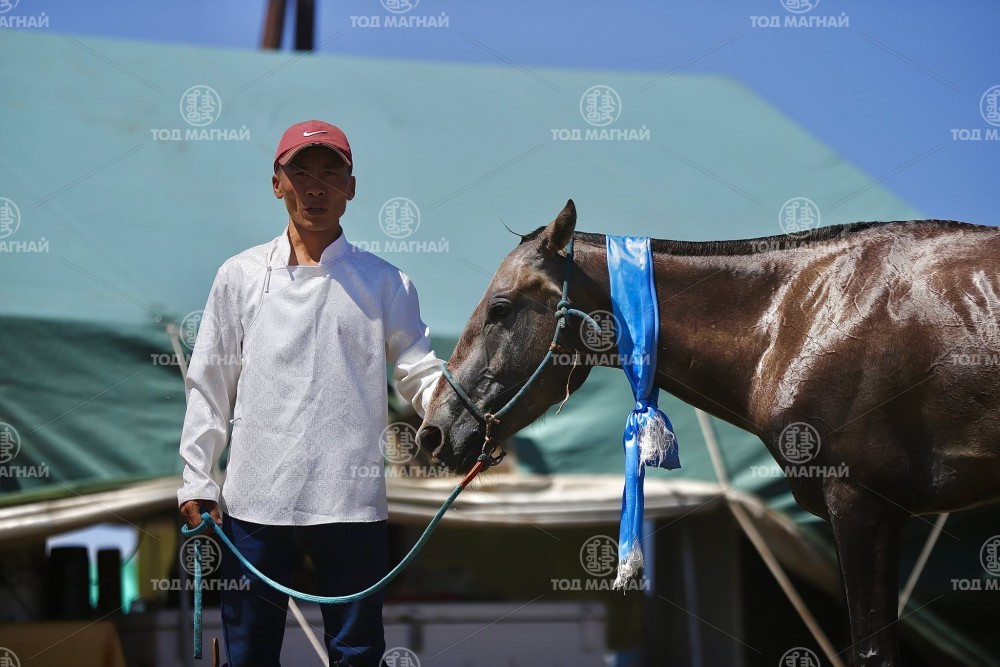 Түрүү магнайд Ховд аймгийн Мянгад сумын уяач МУМУ Загджавын Мэндсайханы хул. Уралдаанч 14 настай Лхагважаргалын Төгсжаргал, уяа сойлгыг Монгол улсын Тод манлай уяач Дашдоржийн Мөнхбат