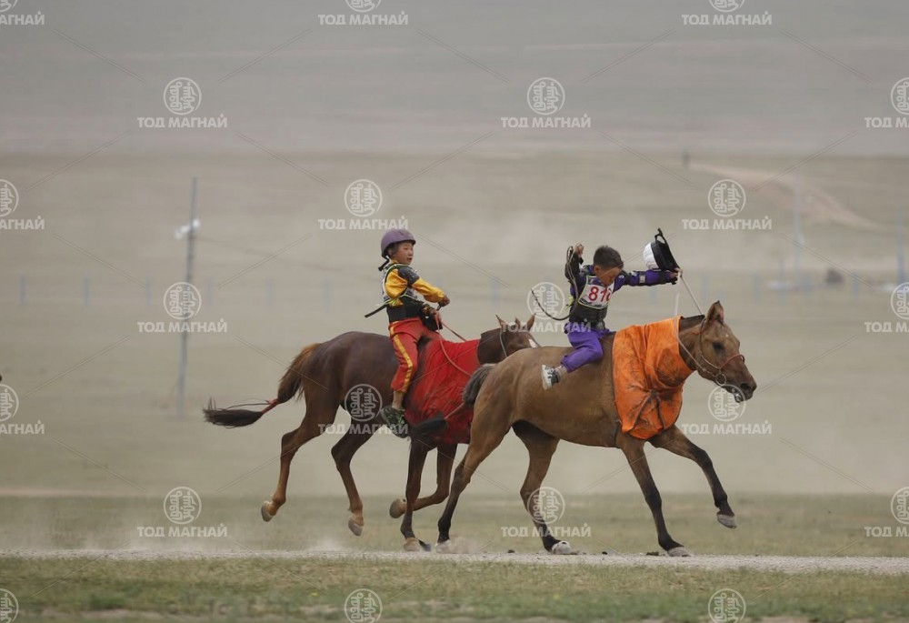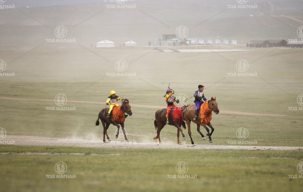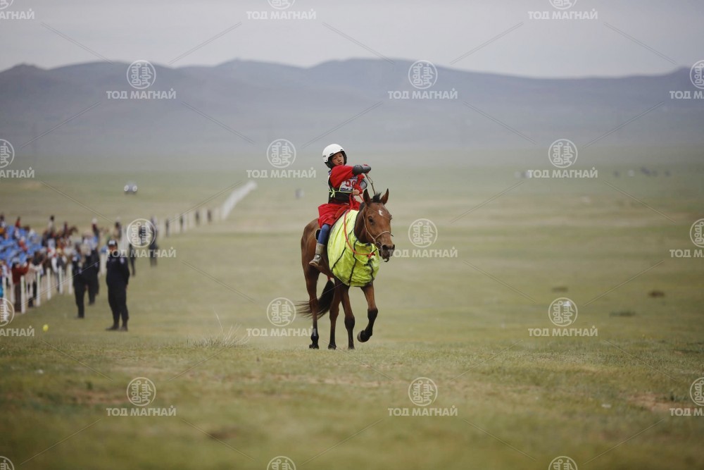 Түрүү магнайд Увс аймгийн Тэс сумын уяач Гавъяат барилгачин Мятавын Хүрэлбаатарын хүрэн халзан.Уралдаанч 8 настай Батын Ерөөлт, уяа сойлгыг Монгол улсын Манлай уяач М.Цэрэнжав.