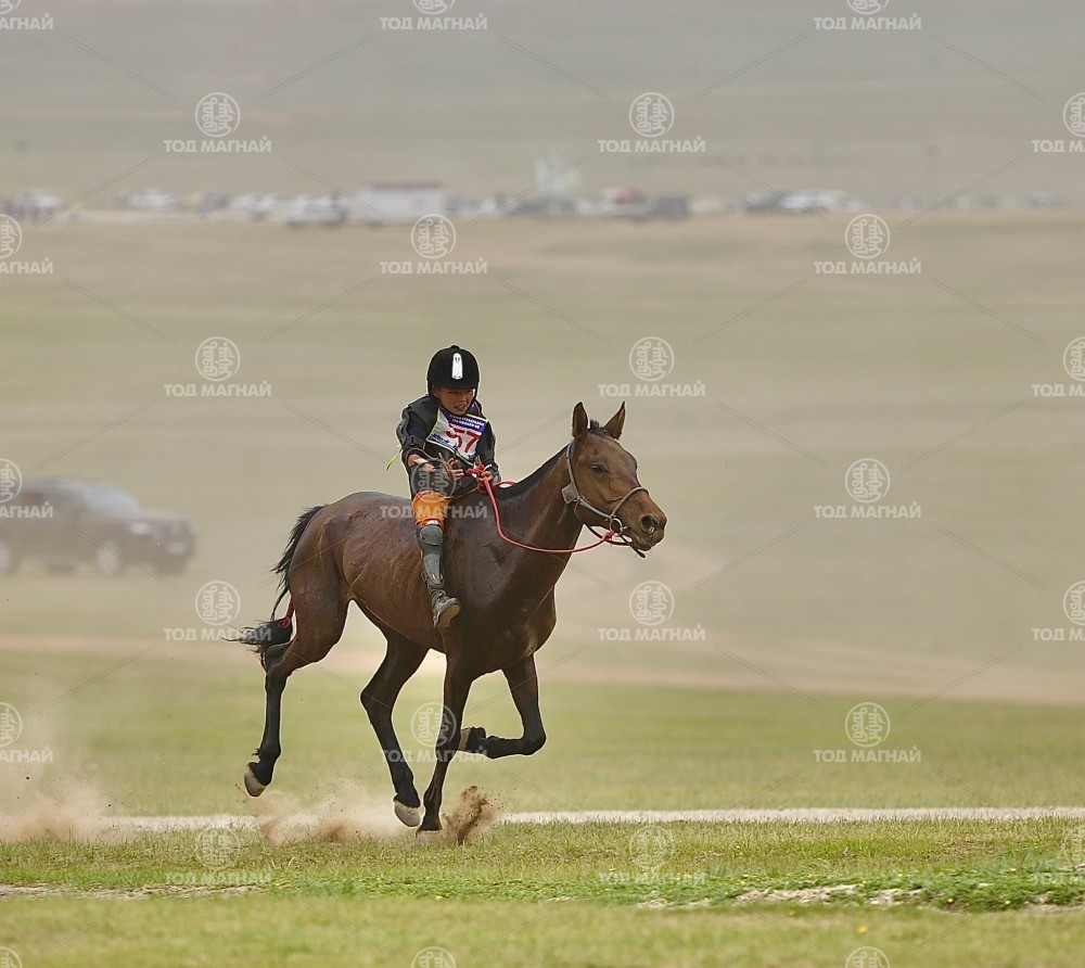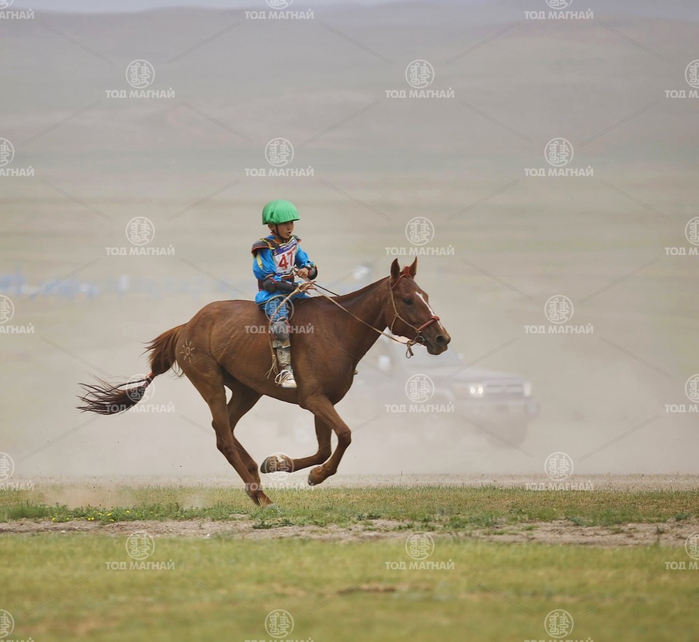 Аман хүзүүнд Төв аймгийн Алтанбулаг сумын уяач Гансүхийн Хадбаатарын хүрэн халзан азарга. Уралдаанч 11 настай Цэгээгийн Дөлгөөн, уяа сойлгыг аймгийн Алдарт уяач Г.Пүрэвцэнд.