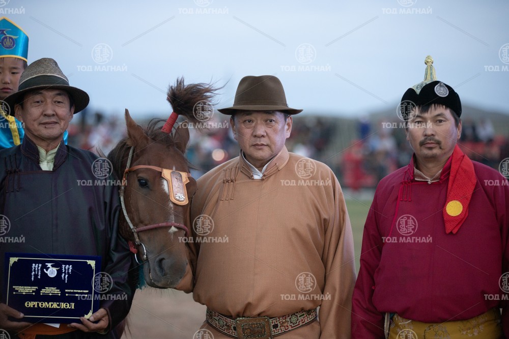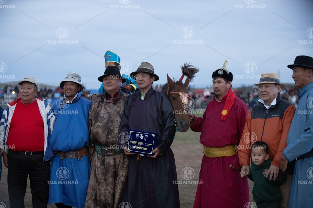 9. Завхан аймгийн Алдархаан сумын уугуул, "Шинэ эргэлт" компанийн захирал МУ-ын Алдарт уяач Чинбатын Болд-Эрдэний цавьдар. Тод манлай уяач С.Ганхуягийн унаган. Бүсийн уралдаанд нэг айрагдсан. Уяа сойлгыг МУ-ын Алдарт уяач Галсангийн Болдбаатар. Уралдаанч 10 настай Т.Отгонсүх.