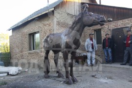 Монголын түмний морины их шүтээн дээр сүндэрлэх төрийн найман хүлгийн хөшөөг СТА Г.Энхтөр захиралтай “Хулсан чавх” ХХК бүтээж байгаа талаар бид өмнө нь мэдээлсэн. Монгол наадмын чимэг, морьтон эрсийн омогшил болсон шандаст хурдан хүлгэдийн хөшөөнөөс хамгийн түрүүнд Амгалан төрийн ажнай шарга азарганых бэлэн болжээ.